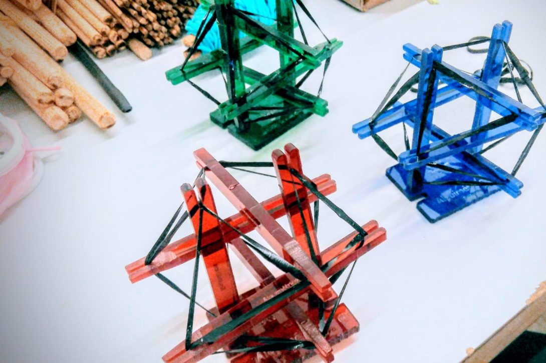 Alquimétricos is an open and collaborative collection of open source building blocks focused on affordable STEAM education for vulnerable communities. The flexible connectors allow to build geodesic domes as well as a plethora of structures with the aid of bamboo sticks and rubber bands. Recycled as well as virgin and alternative materials can be used to fabricate the connectors via laser cutter, CNC router, vinyl cutter plotters as well as handcraft tools like scissors and punch hole pliers. The 4-year-old project has evolved into an international community of makers, educators, social development agents and sharing economy enthusiasts that help polinizing the initiative among schools, cultural, permacultural and counter-cultural centers. The product blueprints as well as educational materials, business and branding model are completely open, so members can appropriate the contents and develop locally in a sustainable way.